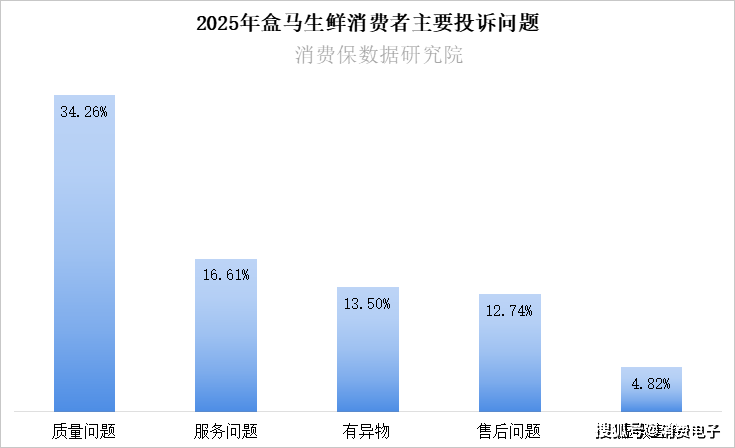 商质量量风险,其质量赞扬占比(34。26%)超线%);办事问题赞扬占比取行业平均接近;而“有异物”问题(13。50%)成为其第三大赞扬点,这一项正在线下商超仅排第六,反映出供应链及仓储配送环节的卫生管控存正在短板。