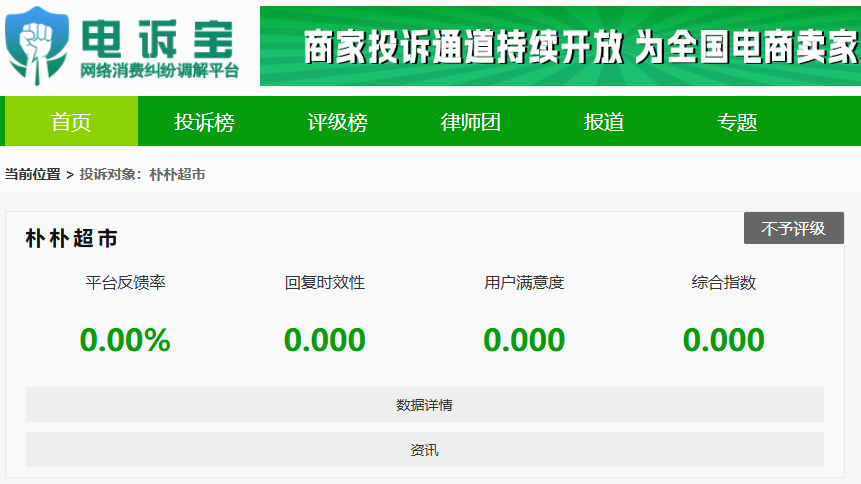按照“电诉宝”2025至今受理的数字零售中生鲜电商范畴用户无效赞扬显示(根据赞扬量排行),“朴朴超市”排正在第3名,最新评级为“不予评级”,除此之外,其他被赞扬的雷同电商平台还有:盒马、美团优选、花礼网。